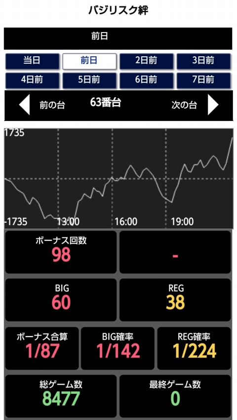 どうやらバジリスク絆の設定推測で第一段階の『偶数濃厚』となっている模様。