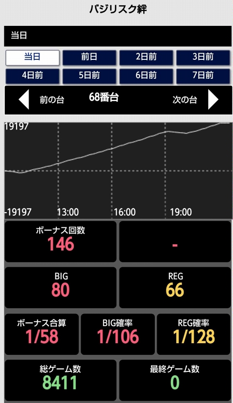 68番台の大爆発に迷わされず遊技終了しなかったのは高設定を確信していたと思います。