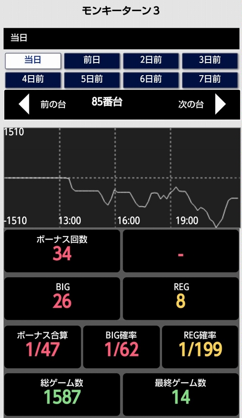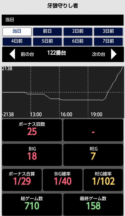 全ての遊技台情報を把握している訳ではないため見落としもあると思いますがセブンデイズプロジェクトVOL.13(5日目)はこのような取材結果になりました。
