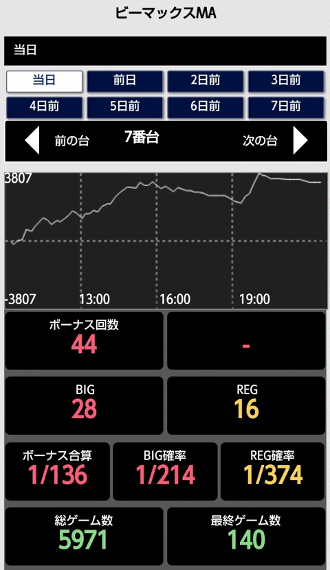 遊技履歴を確認していないため初当りBIGの発生は不明。