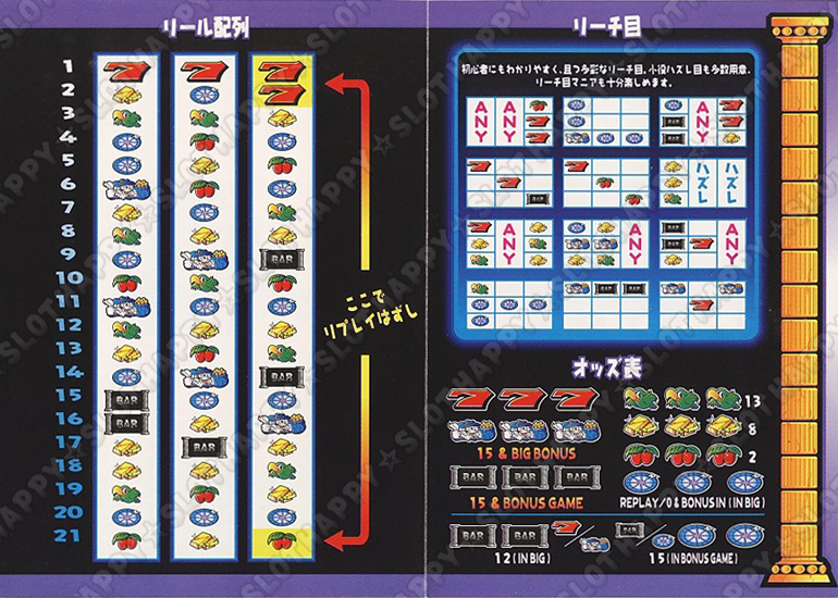リプレイハズシ効果も高くシフト持ち越し中は目押し技術によって複合15枚役を獲得することが必須。